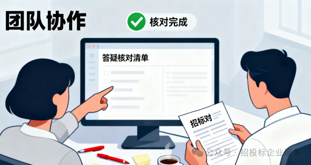 团队核对:提交前让同事对照答疑纪要,检查标书里的修改是否全到位 —— 避免 “自己改了 A 条款,漏了 B 条款”。