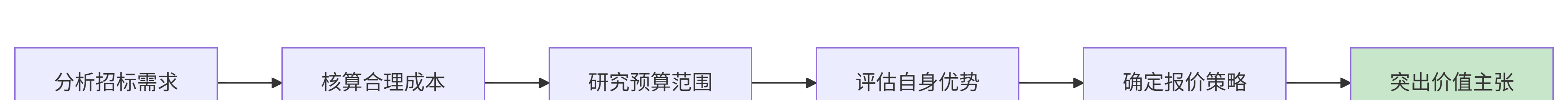 价格区间分析: ■ 恶意低价 (低于成本) → 🚫 直接否决 ■ 非理性低价 (成本-85%) → ⚠️ 高度警惕 ■ 合理低价 (85%-95%) → ✅ 可以接受 ■ 正常报价 (95%-105%) → ✅ 理想区间 ■ 偏高报价 (105%-115%) → ⚠️ 需要说明 ■ 过高报价 (高于115%) → 🚫 可能出局