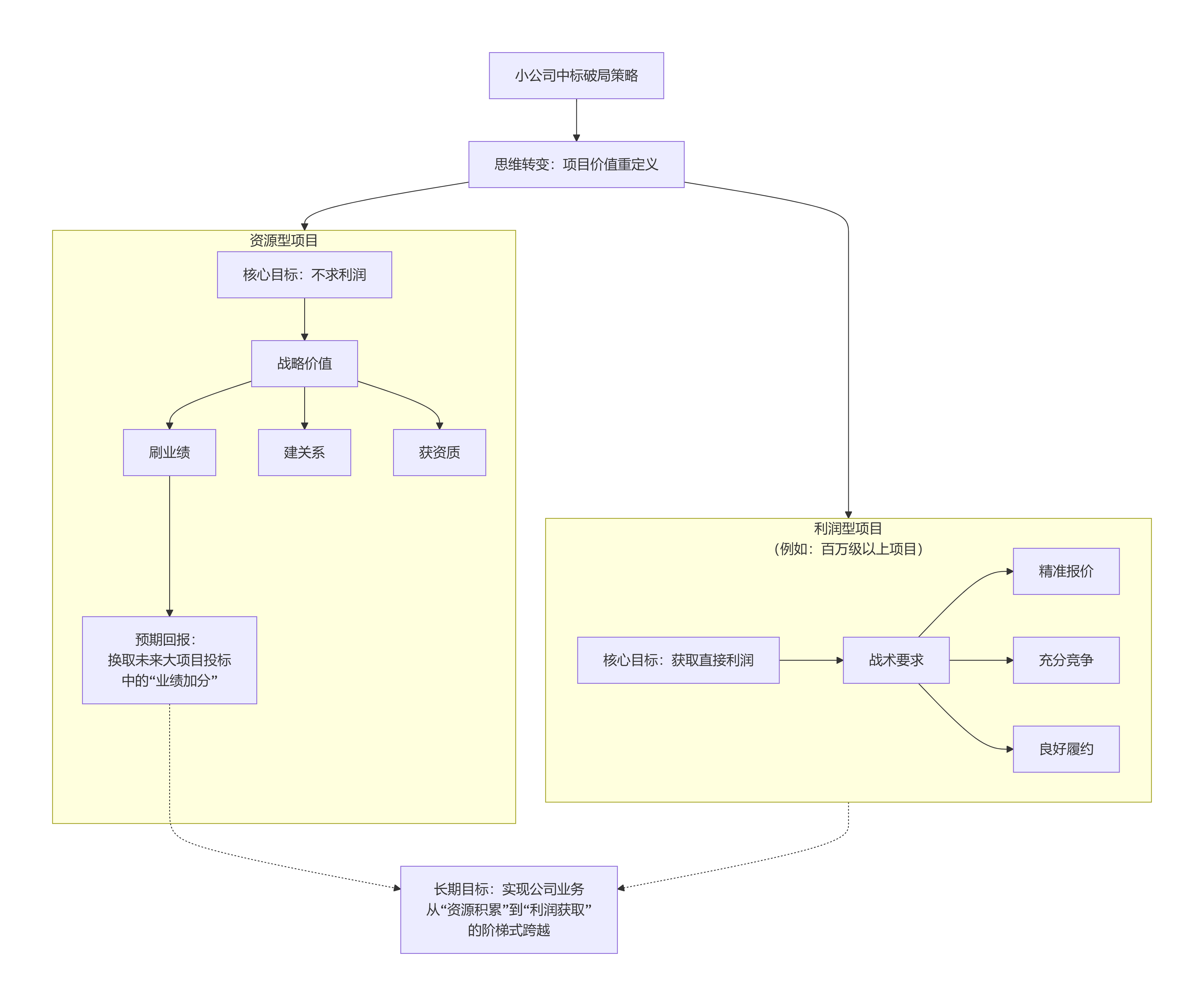 传统思维认为,投标就是为了利润。而“草根”老板们的第一个思维转变,就是将项目分为两种截然不同的类型: